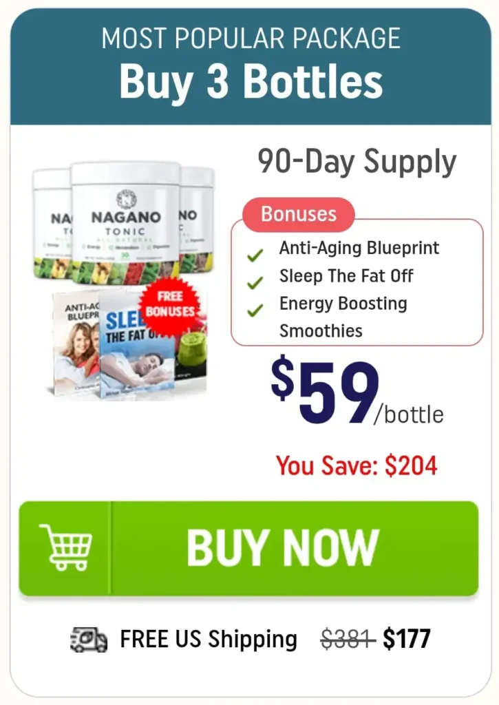 NAGANO TONIC is offered by the manufacturer on its official website in three packages. The manufacturer has priced the supplement affordable so that everyone can use it and improve their health with the help of the supplement.